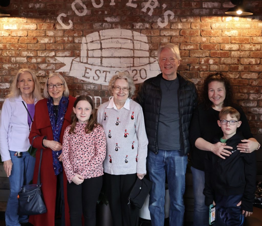 A red coat. My niece Debra bought me a beautiful red coat. Imagine getting such a stylish coat as a gift and having it fit perfectly. I get compliments on it all the time. That’s me, second from the left, in the great red coat.