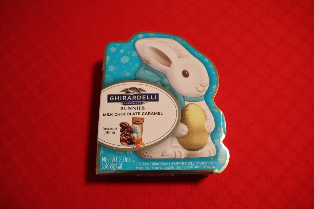 Did I buy the big chocolate bunny? No, but I did buy a small box of Ghirardelli chocolate bunny rabbit candy, six pieces for $3.49, which was marked half off. That’s on the expensive side at 58 cents for each piece.